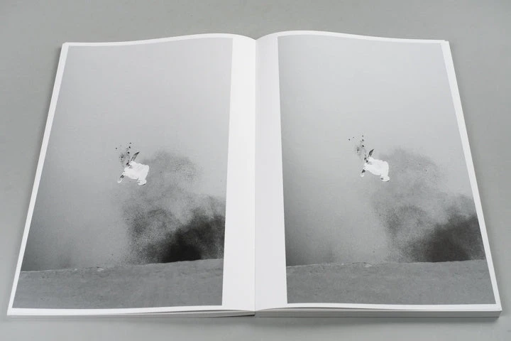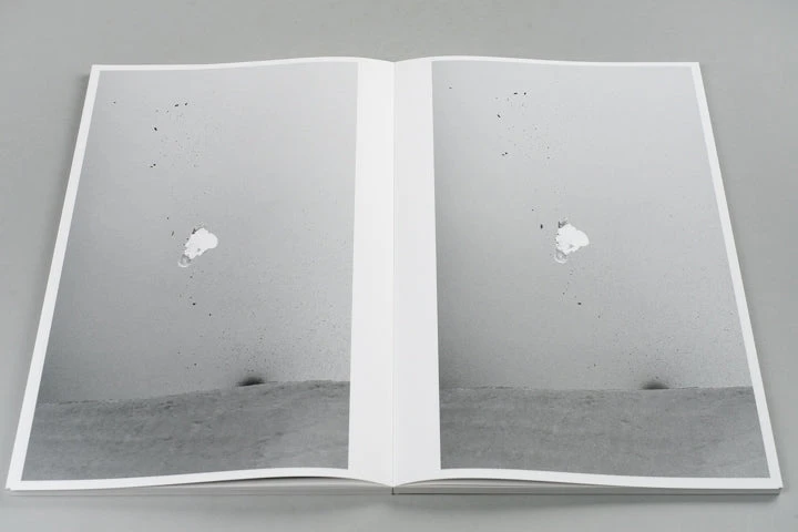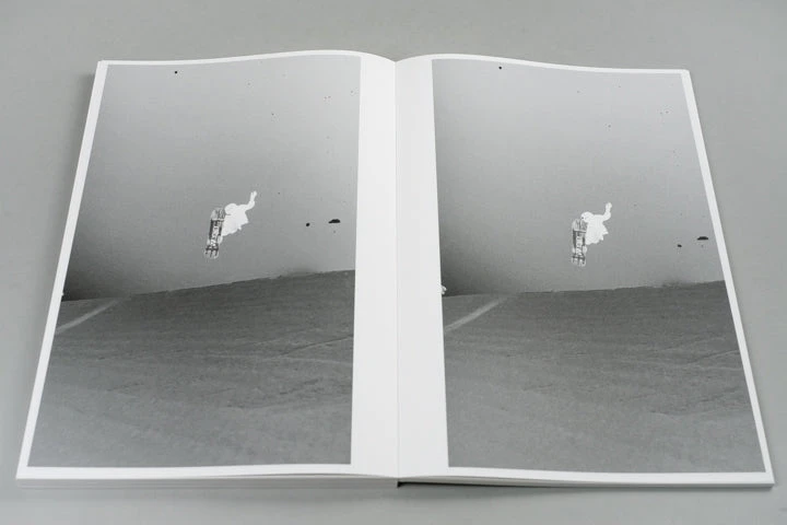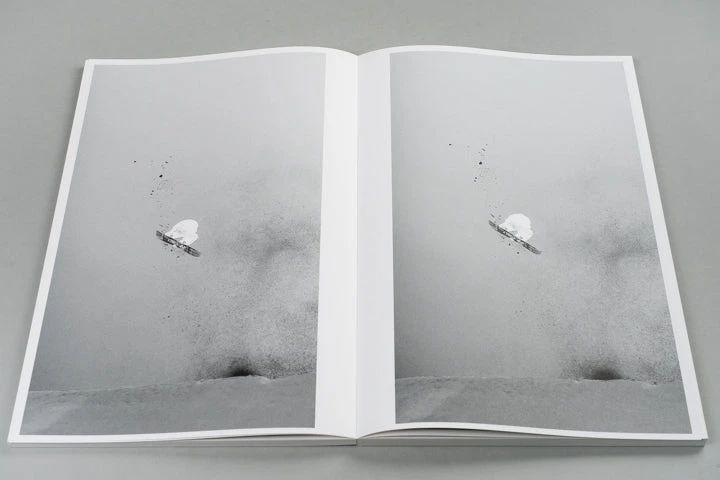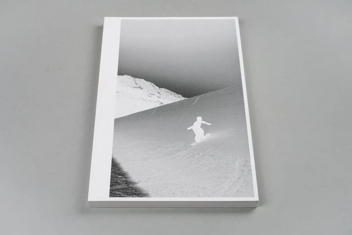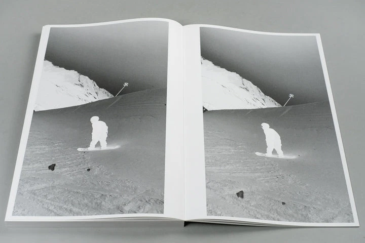 Book with 192 stills from a 3.2 seconds film clip of Haku Shimasaki performing a Cab Double 1080˚. In October 2022 Ari Marcopoulos went to Saas-Fee in Switzerland to work on his short film Butter. The film was shot on the glacier where a halfpipe was made for professional snowboarders to kick off their competitive season. After finishing the film Ari asked a group of snowboarders to send him their favourite clips of tricks which resulted in another film: Black Snow. He had desaturated and inverted the clips so the stills looked like black-and-white negatives, connecting the relatively new technique of multi-channel video to the beginnings of photography. In this process the clip by Haku Shimasaki stood out and has been made into this publication.