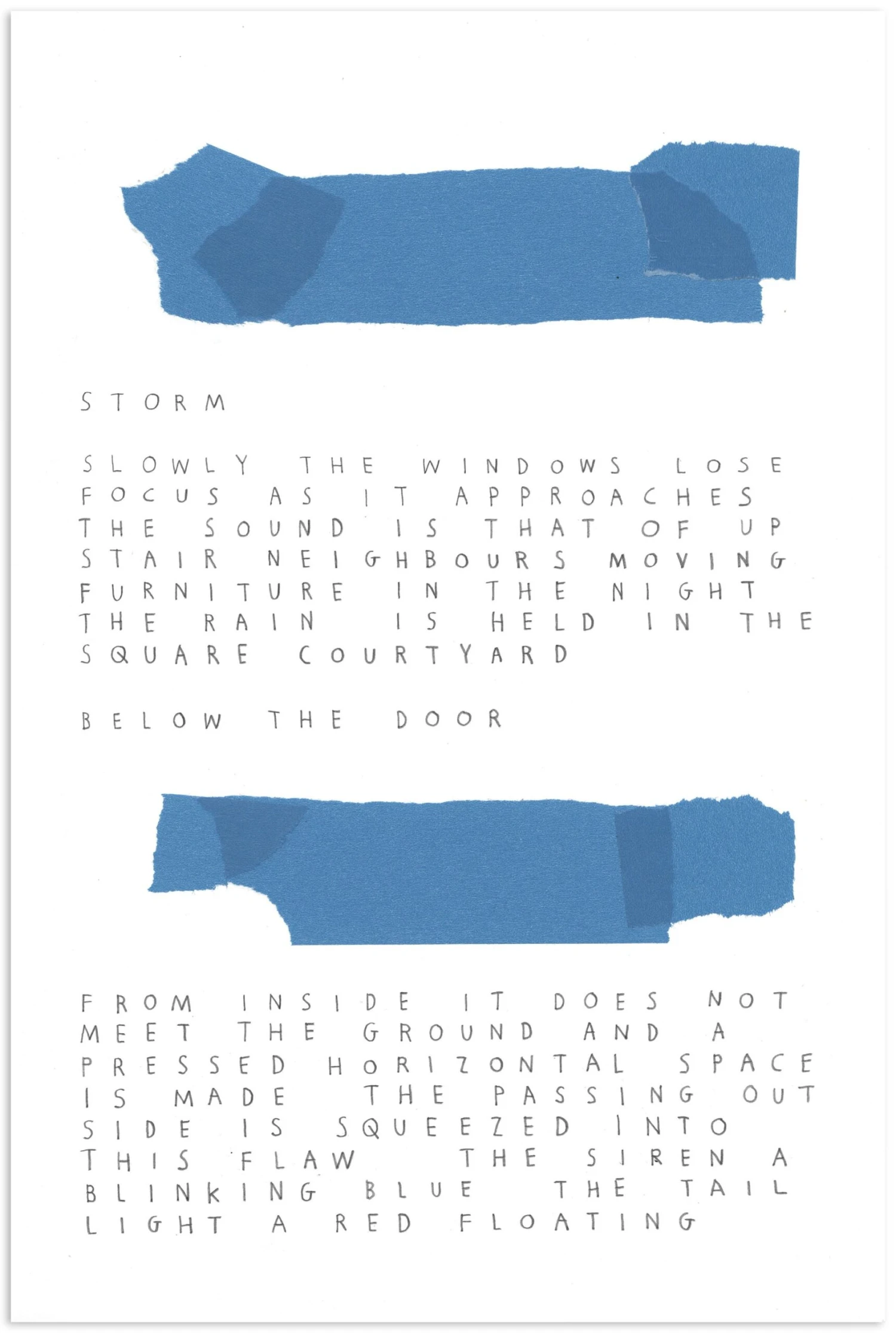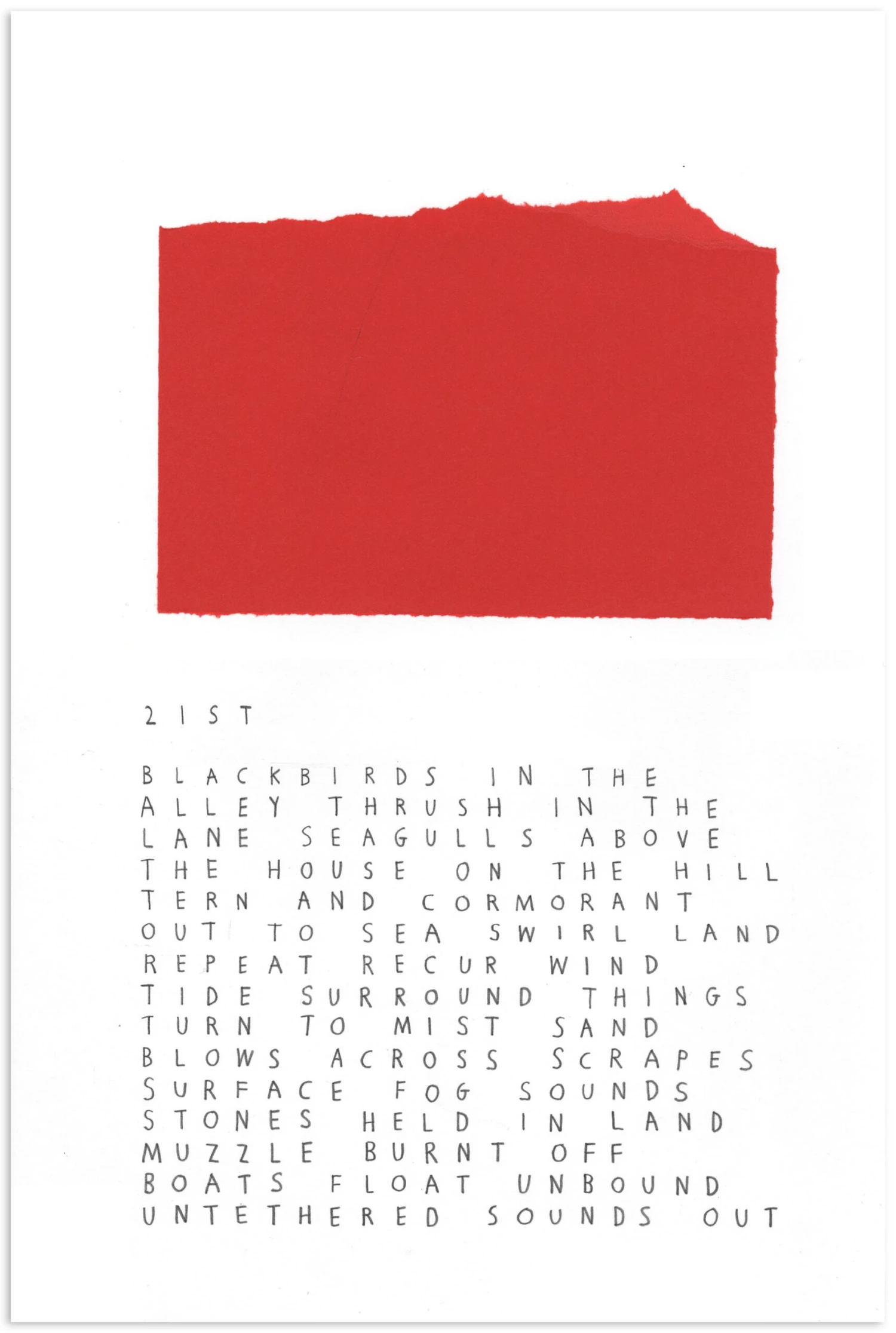 | Drawing | Returning along, Pont du Carrousel, Eight sided pool, Between the bound, 21st, A Place, Those few days of summer, Frick, The Return Home, As If Seeing, Idle Sounds Bound, 22nd, 18th, Folded to the top, And after it retreats, On the way against, 4:30AM, Split behind the stone, Storm, Ghosts Undone |