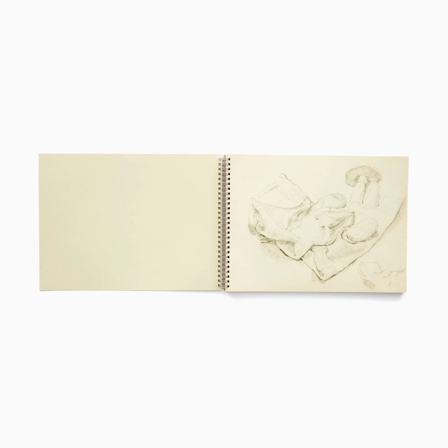 American Art Catalogues presents Paul Thek: Untitled Sketchbook, a facsimile of a notebook from 1969 in which Thek, during his too-brief lifetime, sketched, scribbled, and simmered images and ideas. Featuring thirty-one drawings that have never before been shown publicly, the book is filled with searching self-portraits, likely sketched in a mirror as an act of self-reflection. (“No one has ever interested me quite as much as myself,” he once wrote.) Nearby pages feature images of Christ wearing a crown of thorns alongside strange still lifes: of a crucifix lying next to an empty ashtray, of a mushroom growing what looks like a corkscrew tail, and other of his visions.