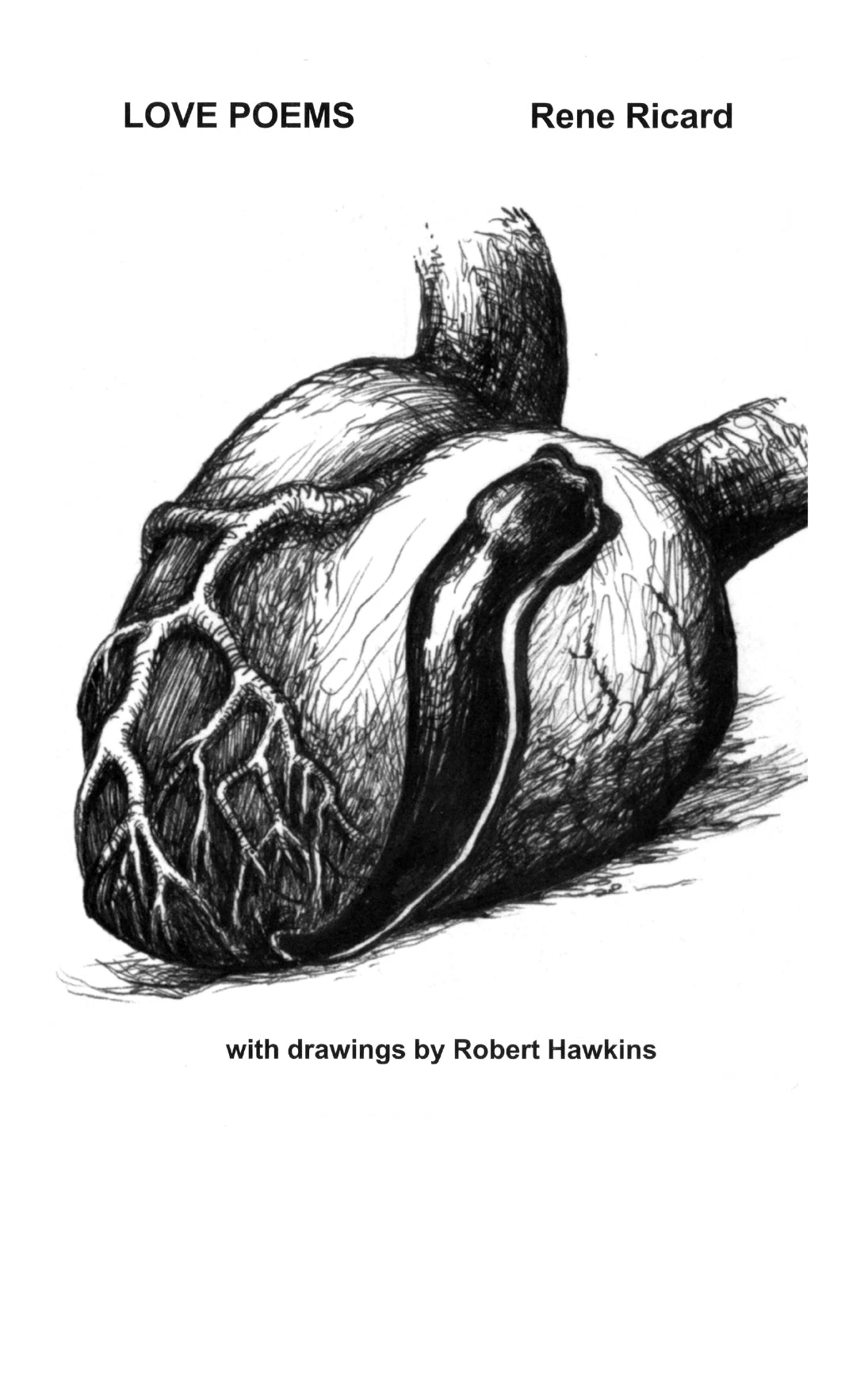 Édité d’après le livre rare, éponyme, publié par Richard Hell aux éditions CUZ en 1999, Love Poems présente trois longs poèmes de Rene Ricard et une série de dessins en noir et blanc du peintre américain Robert Hawkins.