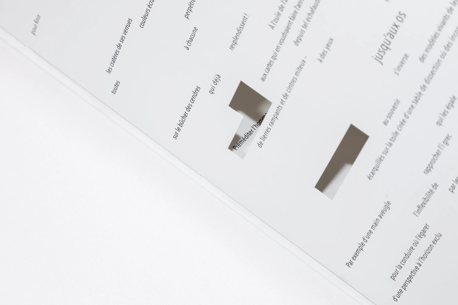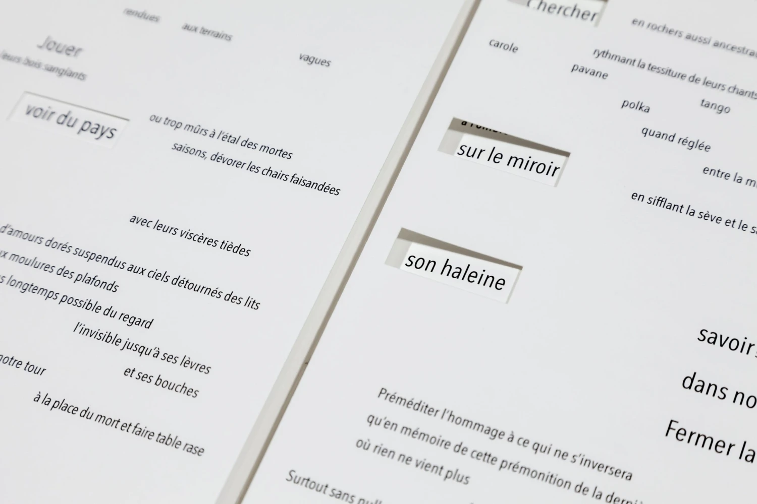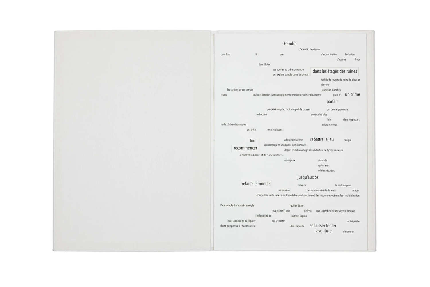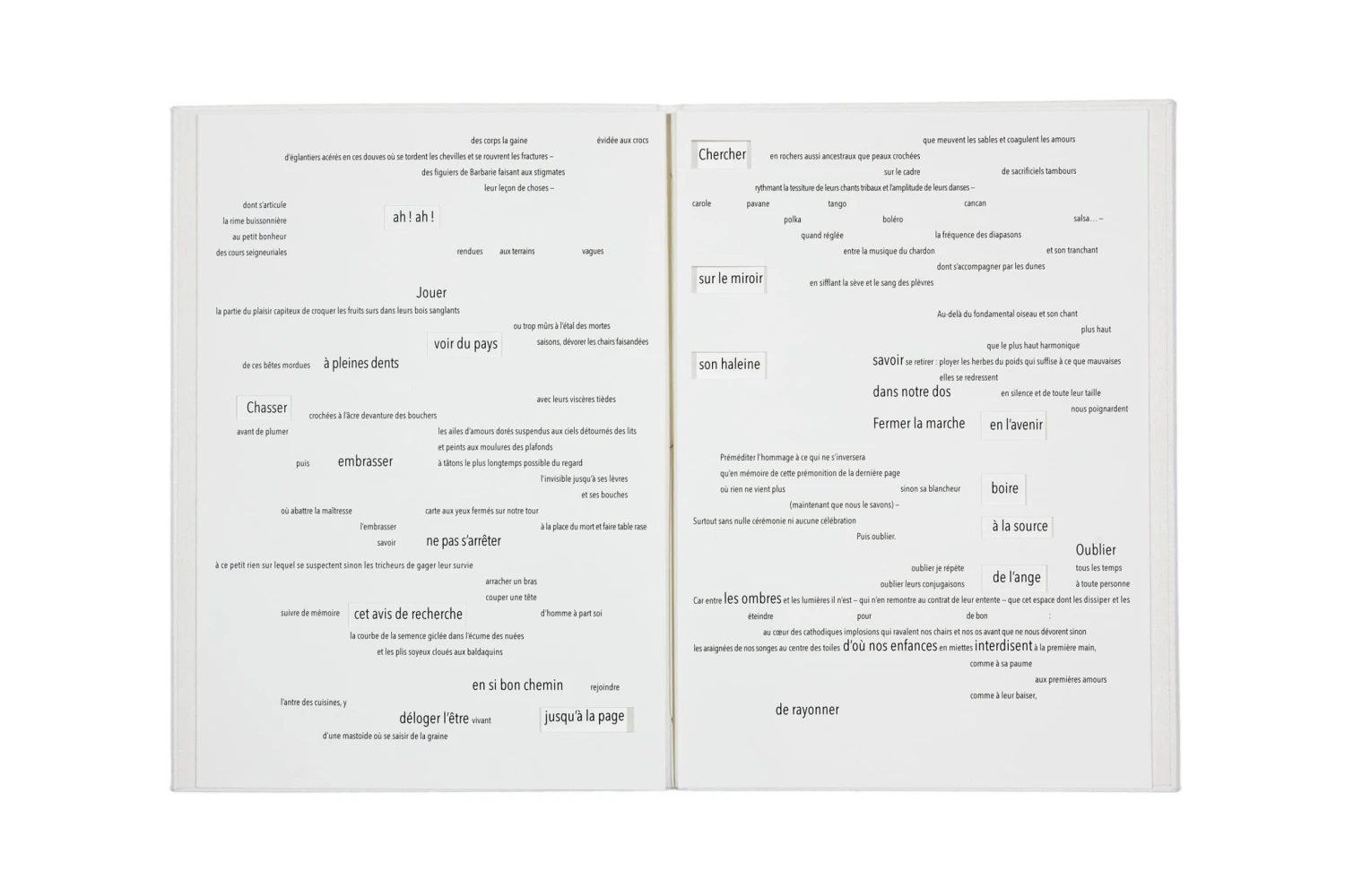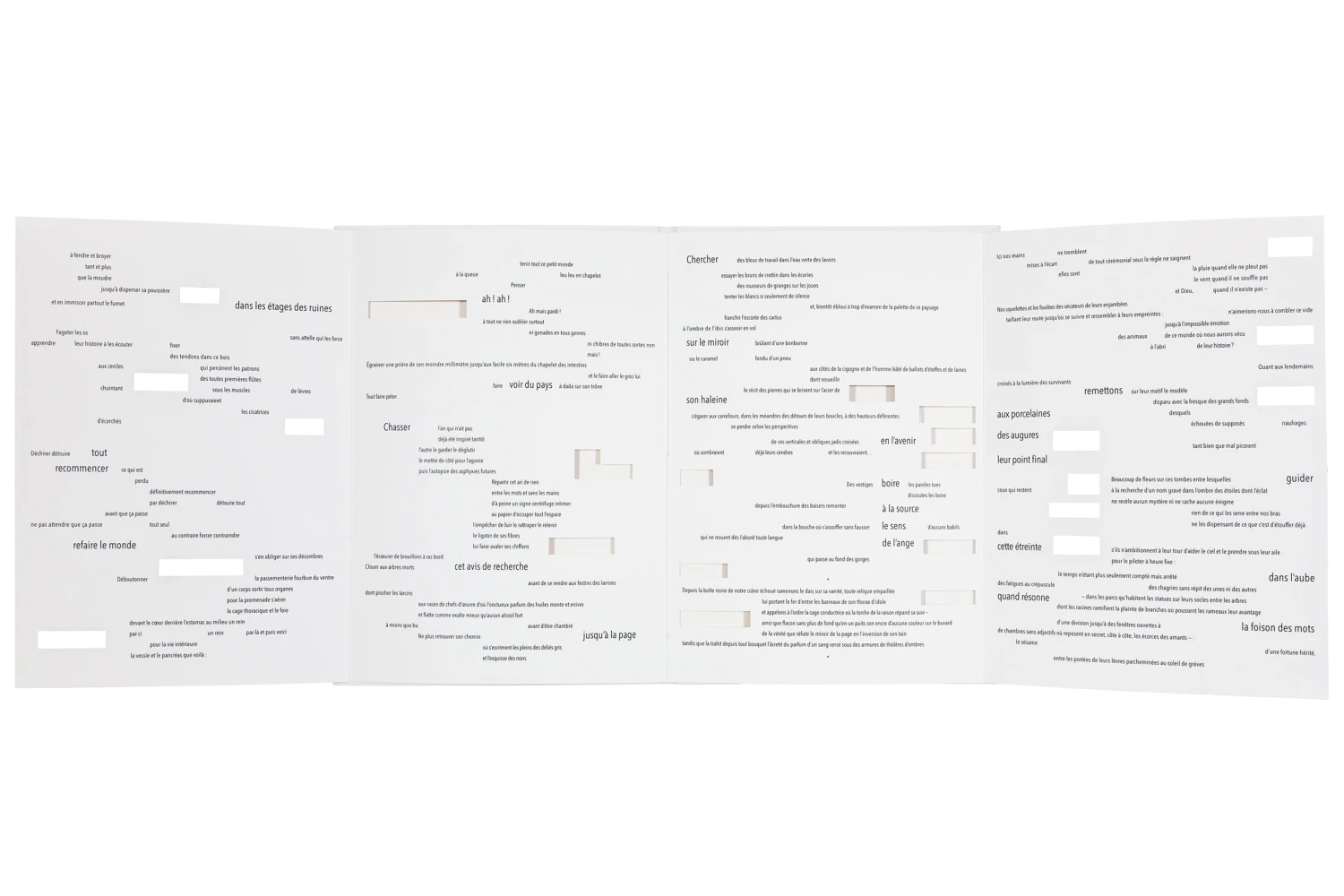 « L’écriture de Programme (poème) a débuté en avril 2018, à Fez, et s’est achevée en Bretagne en octobre 2021, spécialement pour sa mise en forme dans le cadre de la collection «Pli selon pli». Sa mise en pages, ou «mise en scène», explore un type d’écriture contrapuntique, à la manière d’une fugue en musique : plusieurs «voix» se rapprochent, se croisent, se superposent, se questionnent et se répondent, ou s’ignorent. Des «fenêtres» créent des brèches de silence, mais dont l’«éloquence» peut ouvrir sur d’autres voix encore. — Le poème tient son titre de ce que ses propositions, conjuguées à l’infinitif, sonnent comme des injonctions. Injonctions qui peuvent aussi être entendues comme les figures non imposées d’un «Programme libre» : d’un «Art poétique» ? »